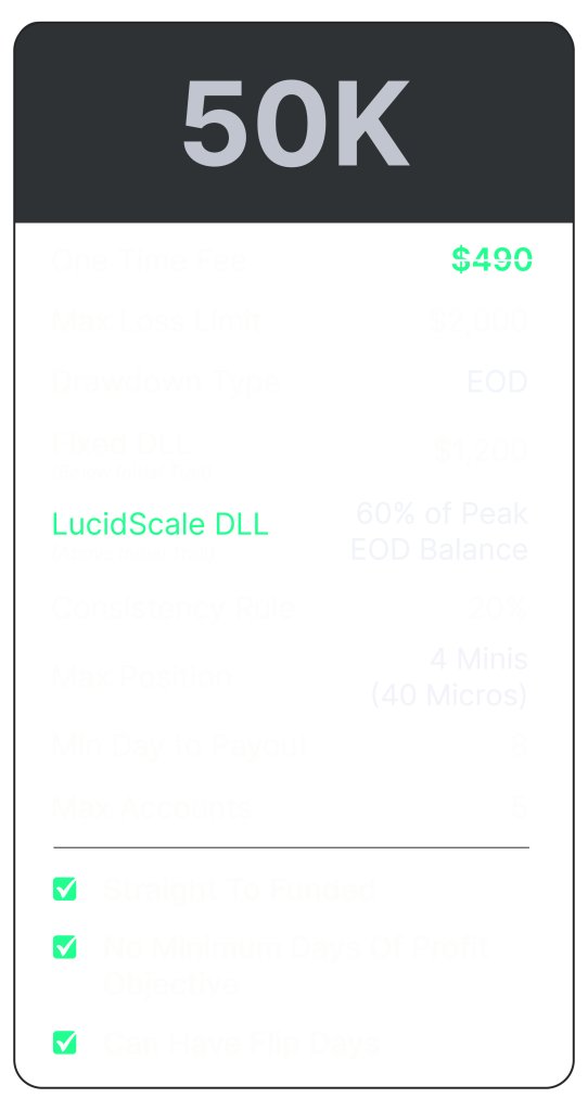 Get funding instantly with LucidDirect or pass a LucidTest and move to LucidPro in as little as 1 day